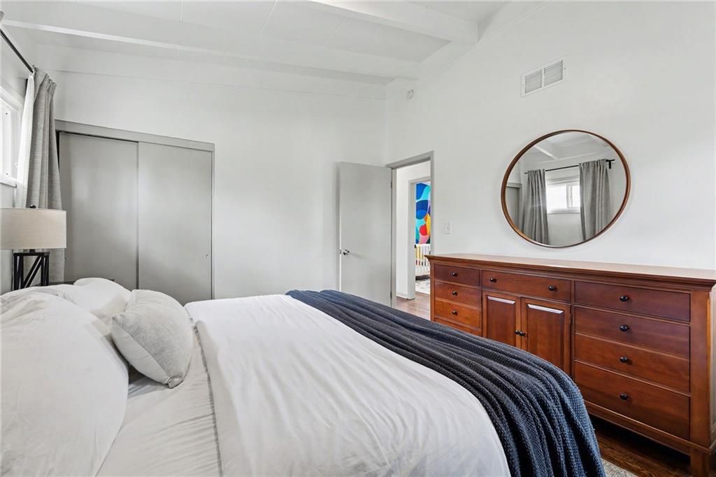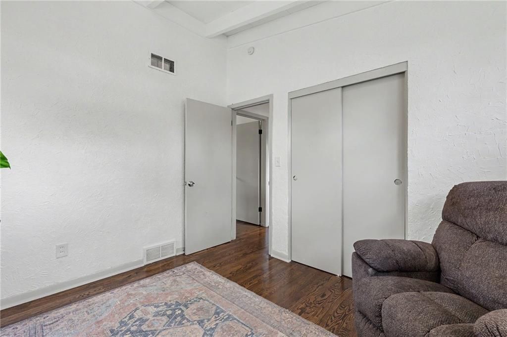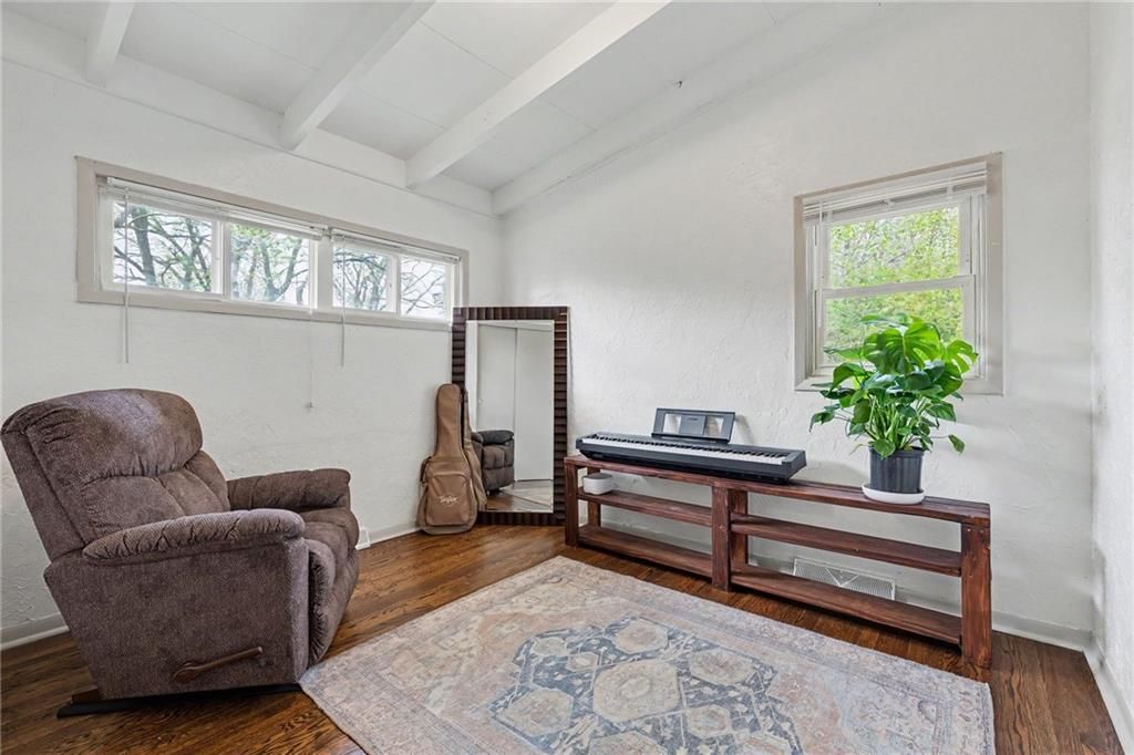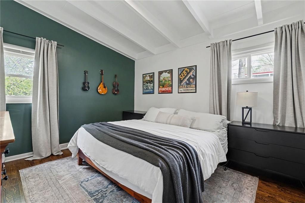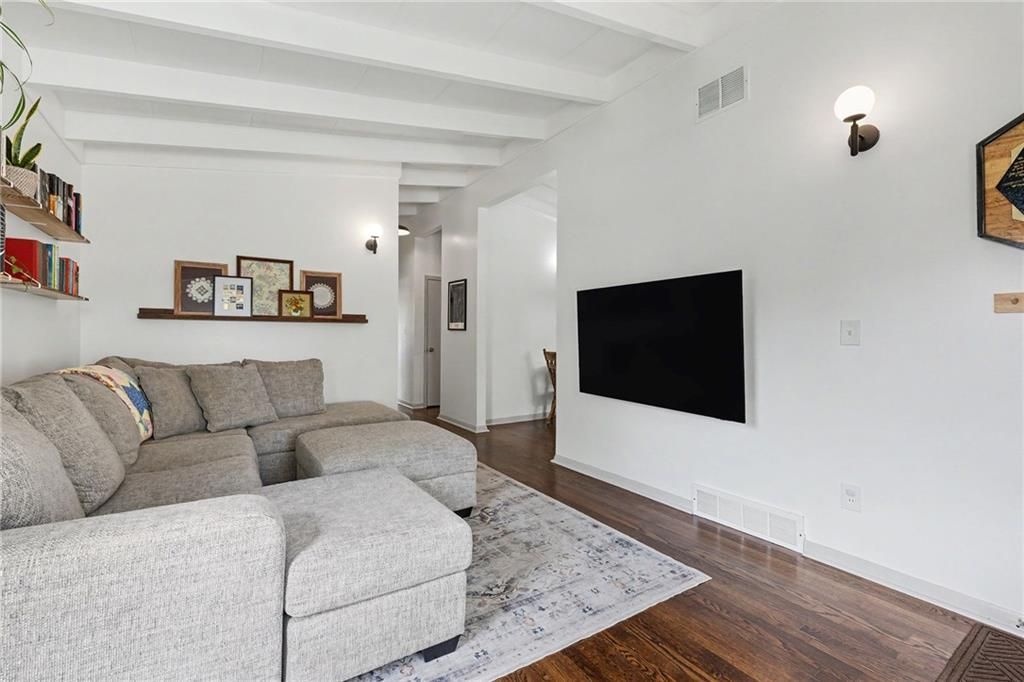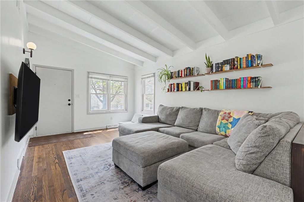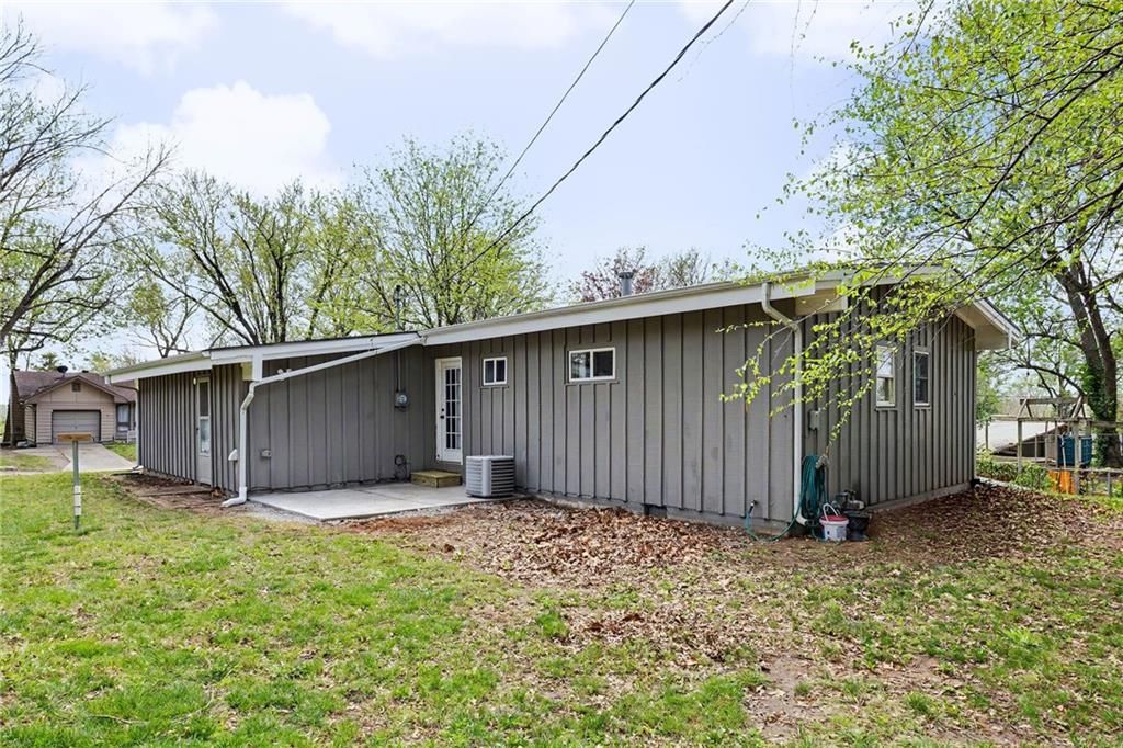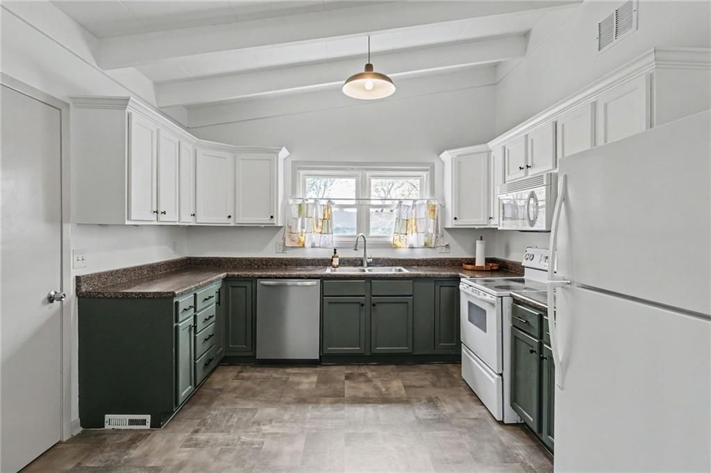 You're in luck...this is The One. From the moment you pull up, you'll notice the charm, mature trees, & convenience of living in the heart of Liberty. Step inside to vaulted ceilings with exposed beams & natural light throughout the entire space. Relax and entertain in the living room with hardwood floors and an easy flow into the rest of the home. The kitchen offers workable counter space and features sage green cabinets, which is one of today's trending design choices. The primary bedroom has a bold accent wall, adding character yet not losing the calm and comfortable bedroom feel. Two additional bedrooms offer flexibility for guests, an office, or whatever fits your lifestyle. The bathroom has been updated with tile finishes. Outside, you have space to hang out and relax at the end of the day. It's beautiful, move-in ready, and full of simplistic charm. Welcome Home.